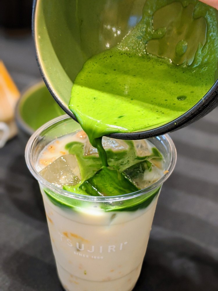 After whisking the matcha, we got to pour it into our own lattes. I tried an iced O Matcha Latte and an iced Kinako Kuromitsu Latte. If you’re not sure where to start with your latte order, I was told that the O Matcha Latte is essentially the “base” for most of their matcha drinks so that would likely be a good starter. The Kinako Kuromitsu latte is made of a roasted soy bean flour and brown sugar syrup, which makes the drink itself a bit sweeter. Overall, I really loved the matcha lattes and particularly loved the kinako kuromitsu latte! I substituted dairy milk with oat milk and it was so, so creamy – highly recommend trying that if you are needing a dairy alternative.