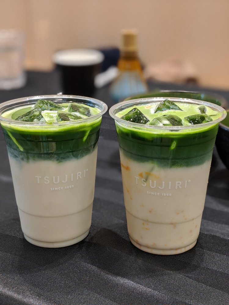 O Matcha Latte (L) and Kinako Kuromitsu Latte (R)