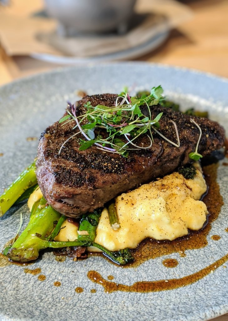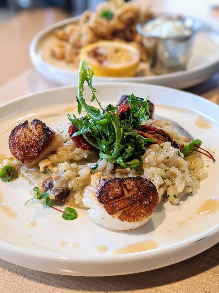 For appetizers, we tried the Pan Seared Alaskan Scallops ($18) and the Crispy Fried Calamari ($16). I loved the scallops and would definitely get them again. Served over some risotto, the scallops were cooked so well. Upon talking to the executive chef, Mark, he explained that this scallop dish was one he personally curated and it’s followed his career journey internationally… so you can only assume that this dish has been really perfected! The calamari was accompanied by a cucumber yogurt dip which nicely balanced out the deep fried dish. Both appetizers were enjoyable but between the two, I definitely preferred the scallops more.