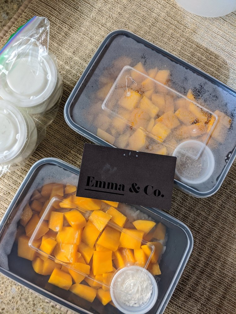 Emma and Co. is a small business that offers mango sticky rice. Fun fact: Emma is a young and inspiring 13 year old entrepreneur! As a mango sticky rice fan, I knew I had to place an order right away. If you haven’t had mango stick rice before, it’s a sweet glutinous rice that is topped with mango and coconut milk. When you order from Emma, you also have a choice of coconut flakes or sesame seeds as a side. The mango sticky rice was a hit for me and I really enjoyed it. Larger boxes are $10 and it’s a big enough portion to share. She also has smaller sizes and can complete group orders if you need to sweeten up an event. To place an order, DM Emma on Instagram and claim your spot during one of her delivery dates. PS Your order will be personalized with some beautiful calligraphy too, all done by Emma herself!