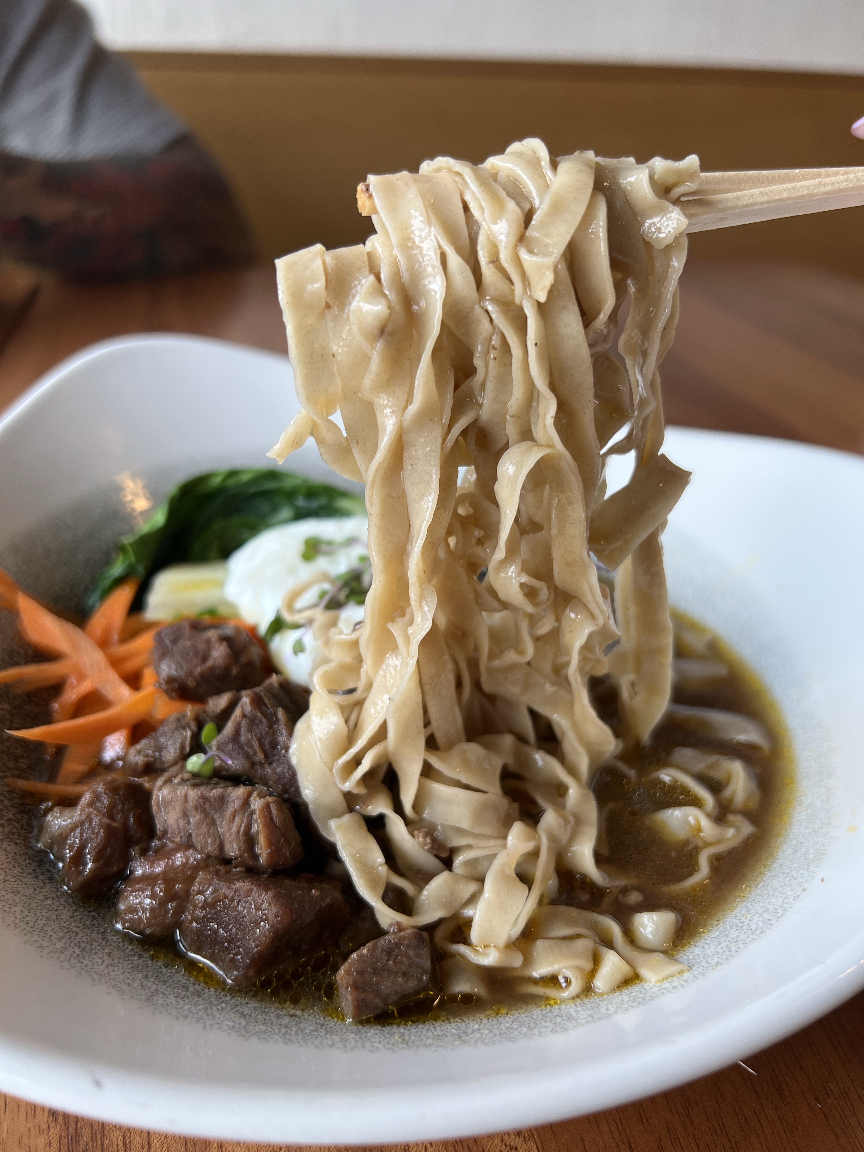 Filistix’s brunch menu features some classic Fillipino dishes with a modern twist. If you enjoy a savoury brunch, I’d recommend paying them a visit for your weekend brunch date! Their menu is not super extensive but it’s definitely quality over quantity here. After sipping on their shaken mango iced tea, I settled on ordering the Tapsilog and the Beef Pares Mami.